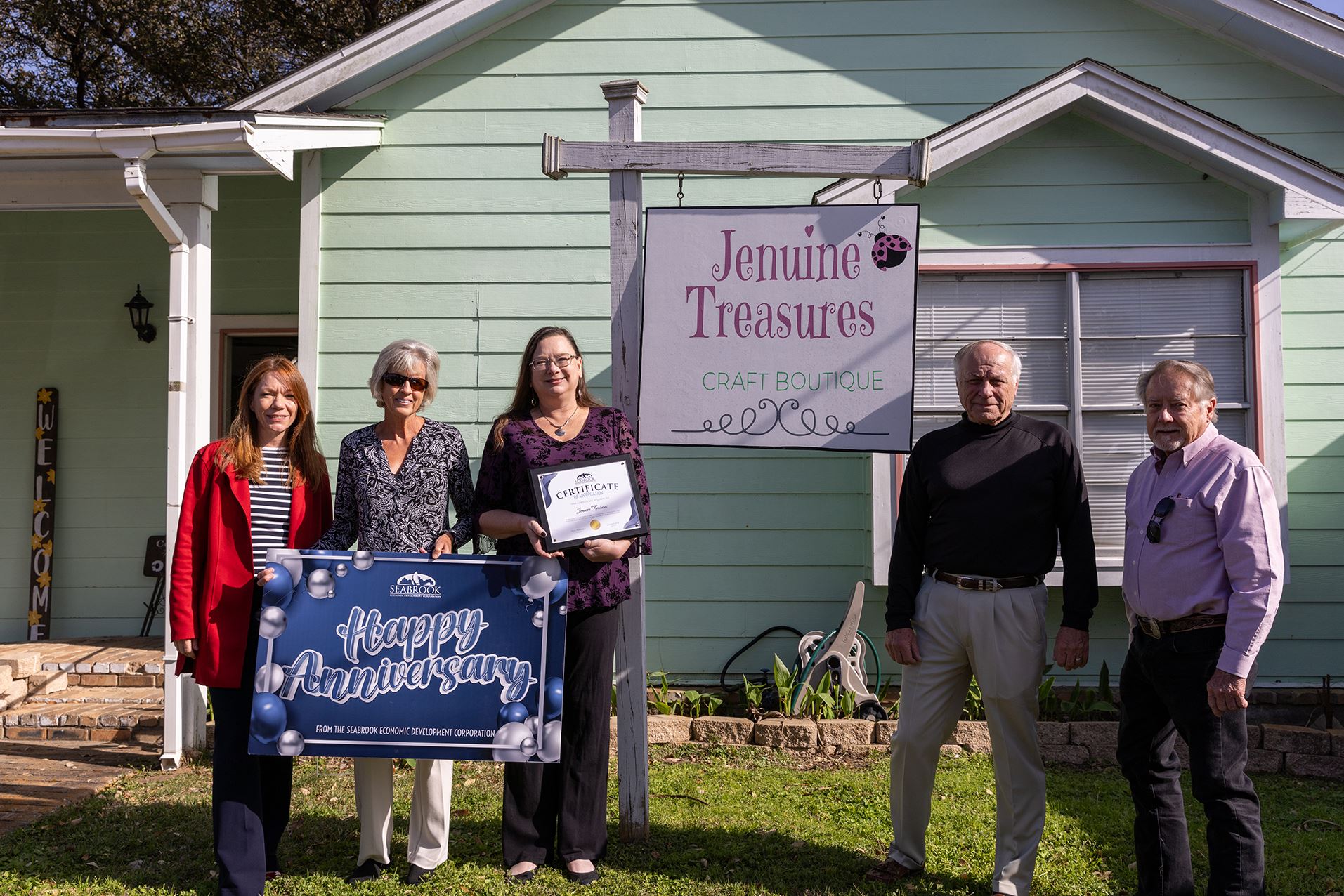 Seabrook, TX – The Seabrook Economic Development Corporation (SEDC) proudly recognized Jenuine Treasures as part of its Business Anniversary Program Initiative, which honors local businesses reaching significant milestones. Jenuine Treasures recently celebrated five years of providing the Seabrook community with a unique craft boutique experience. The celebration took place on Thursday, March 6, 2025, at the boutique located at 902 Hardesty Ave.